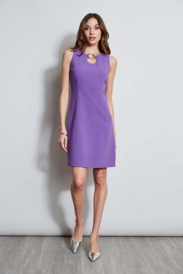 Modern architecture was the inspiration for this sleek fit & flare dress in Elie’s favorite Crepe. The keyhole cut-out showcases a modern Italian sculpted ring and the dress’s contour seaming give it a design edge – whether for day or a night out.