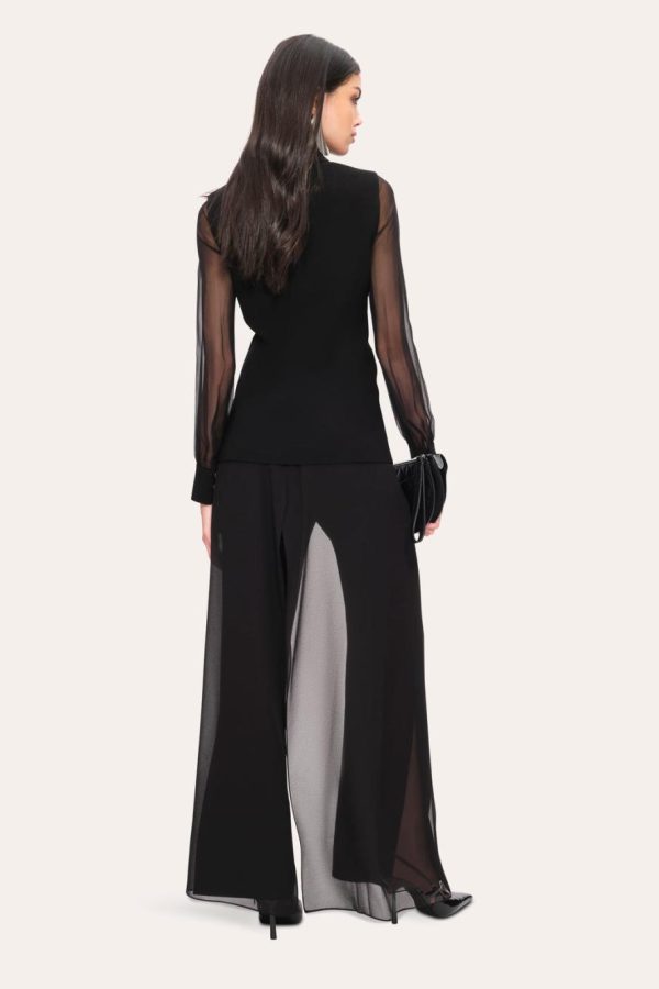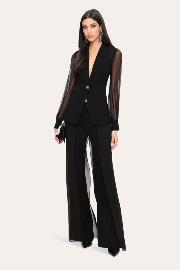 Defined by a light-catching jewel button and chiffon sleeves, this blazer is unexpected and modern. Pair with its matching pants for a power move that feels feminine.