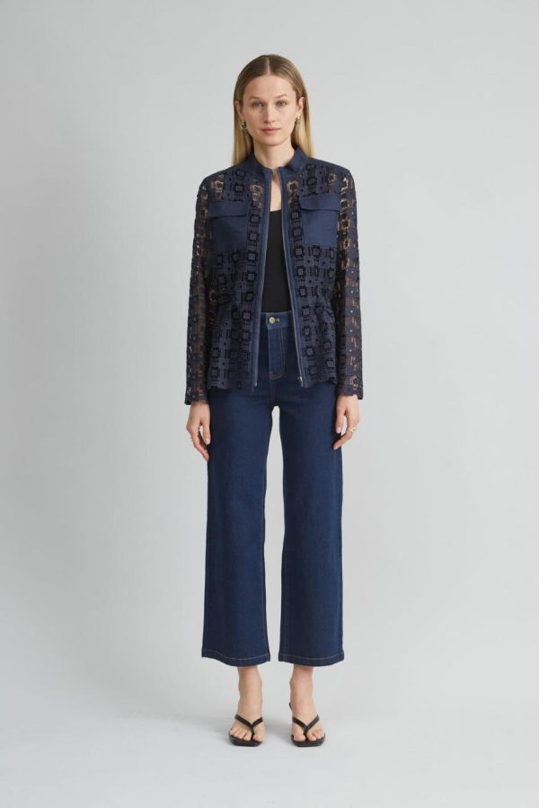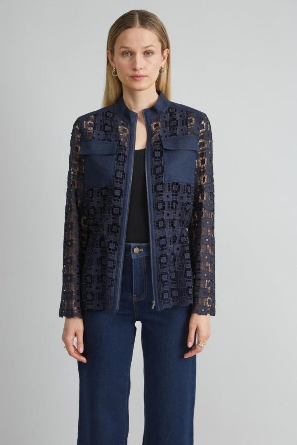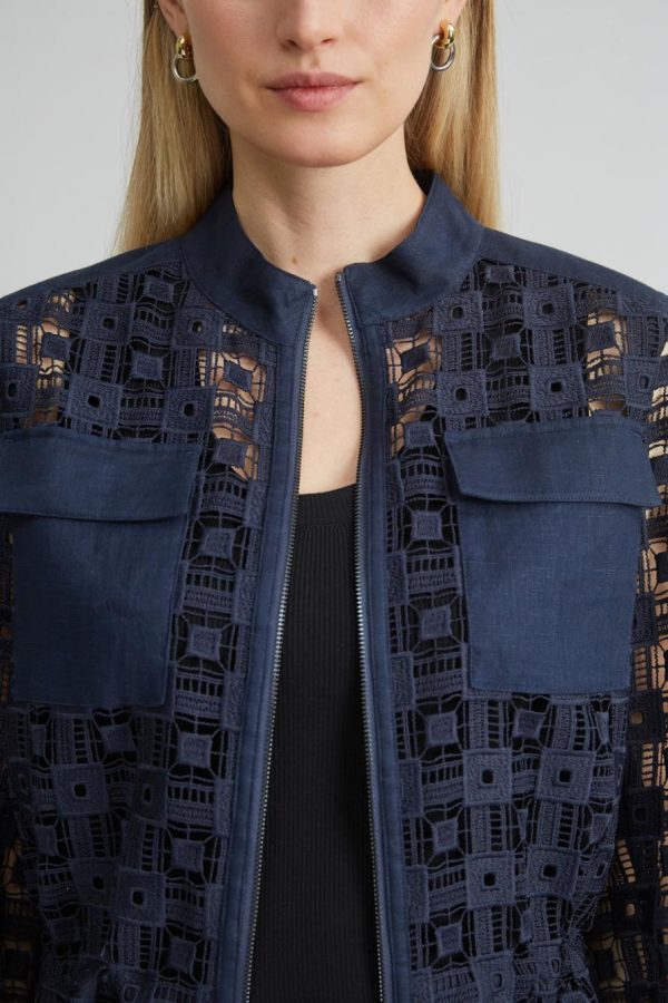 - Openwork Lace Jacket with Linen Utility Details, Drawstring Waist & Zip Front Closure