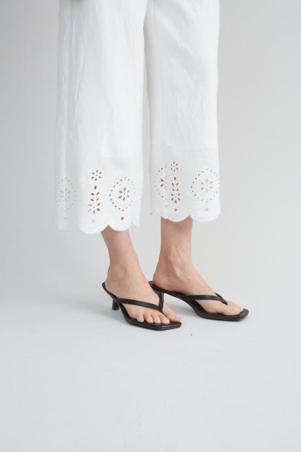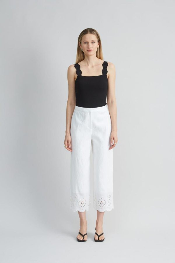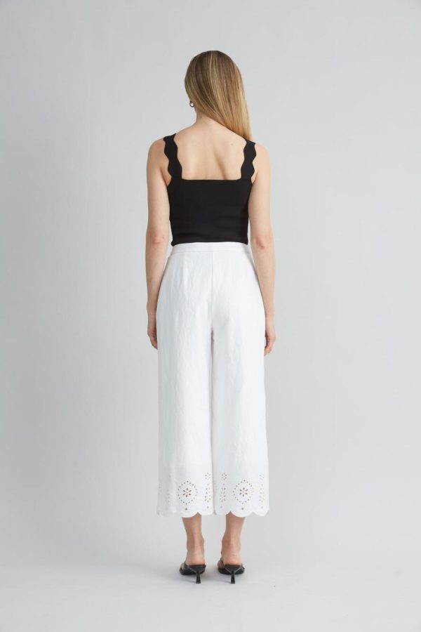 - Linen Wide Leg, High Rise, Cropped Pant with Embroidered Scallop Hem