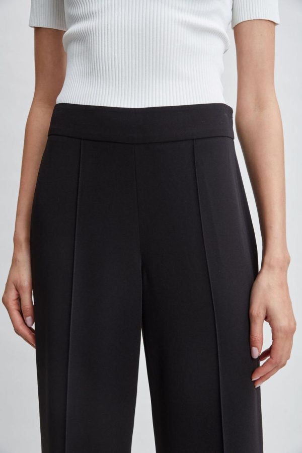 Our wide leg Crepe Pant features a slightly high rise waist, a wider waistband & graphic side slits – we love these pants with knits, silk shirts or layered with its matching blazer for decidedly modern suiting.