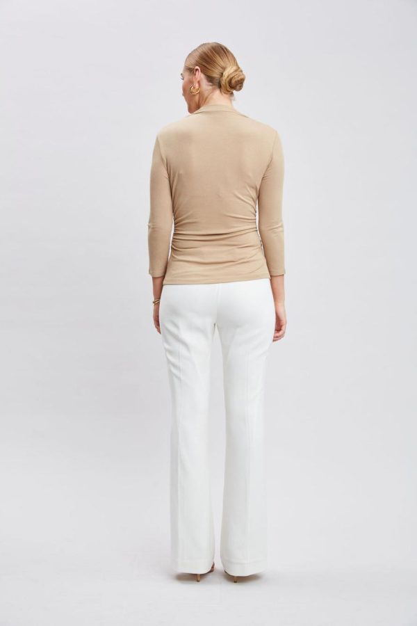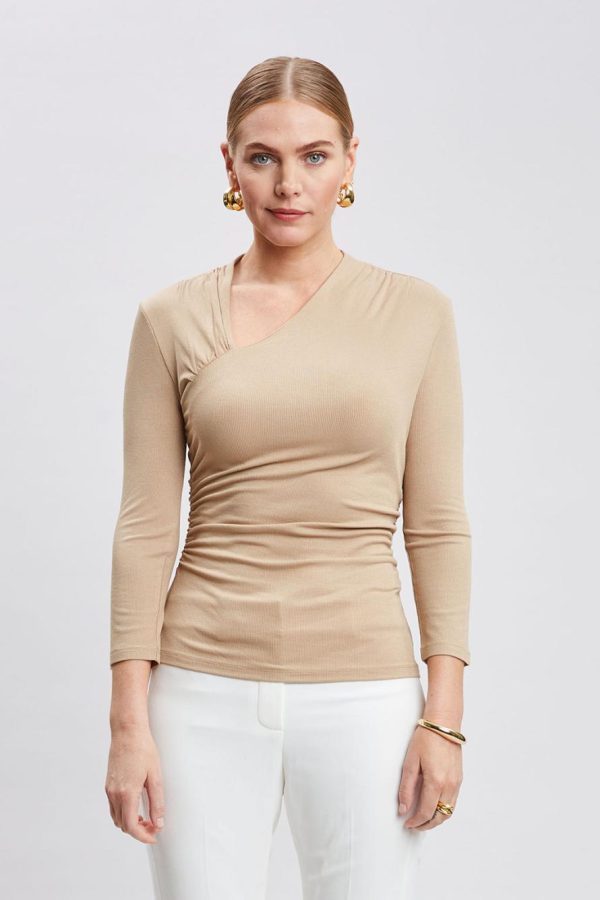 - Asymmetrical Neck Rib Knit with Ruching Detail