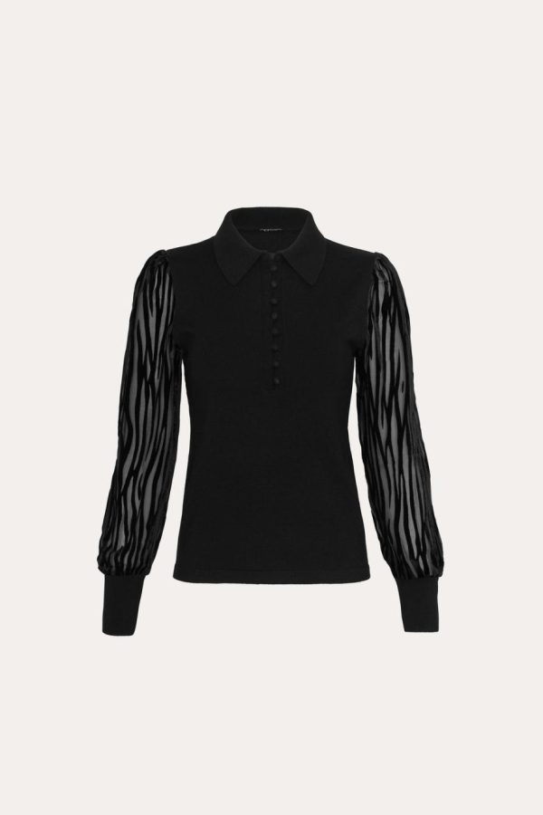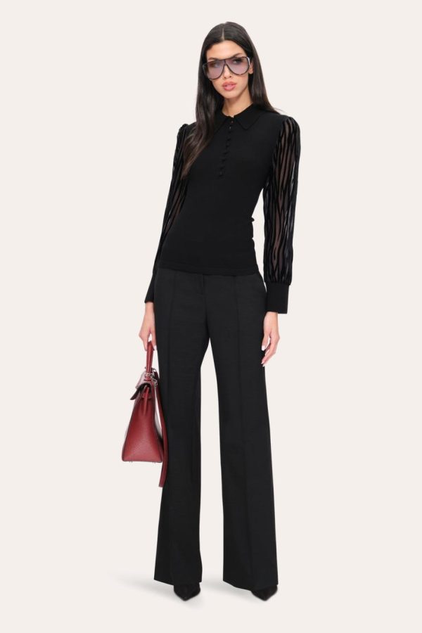 - Long Velvet Burnout Sleeve Polo Merino Wool Sweater