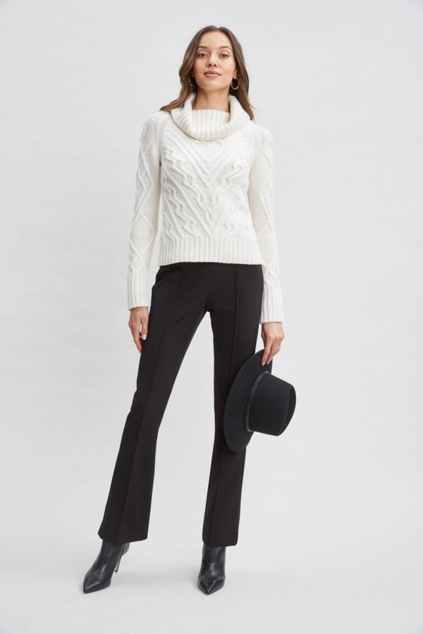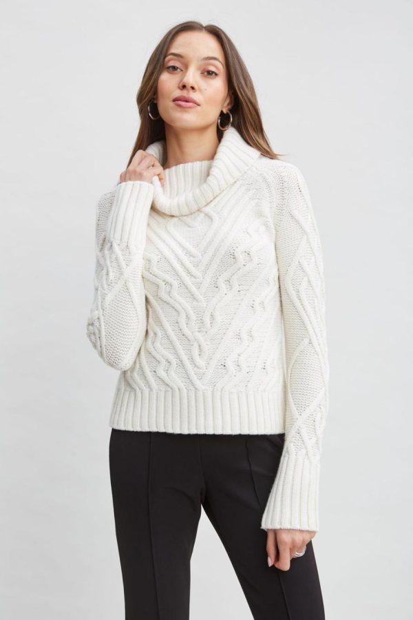 Designed in luxurious Merino Wool, elevate your winter closet with our luxe Merino wool Cable Knit Sweater. Beautiful mitered cables accent the modern lines and strong rib cowl and cuffs.